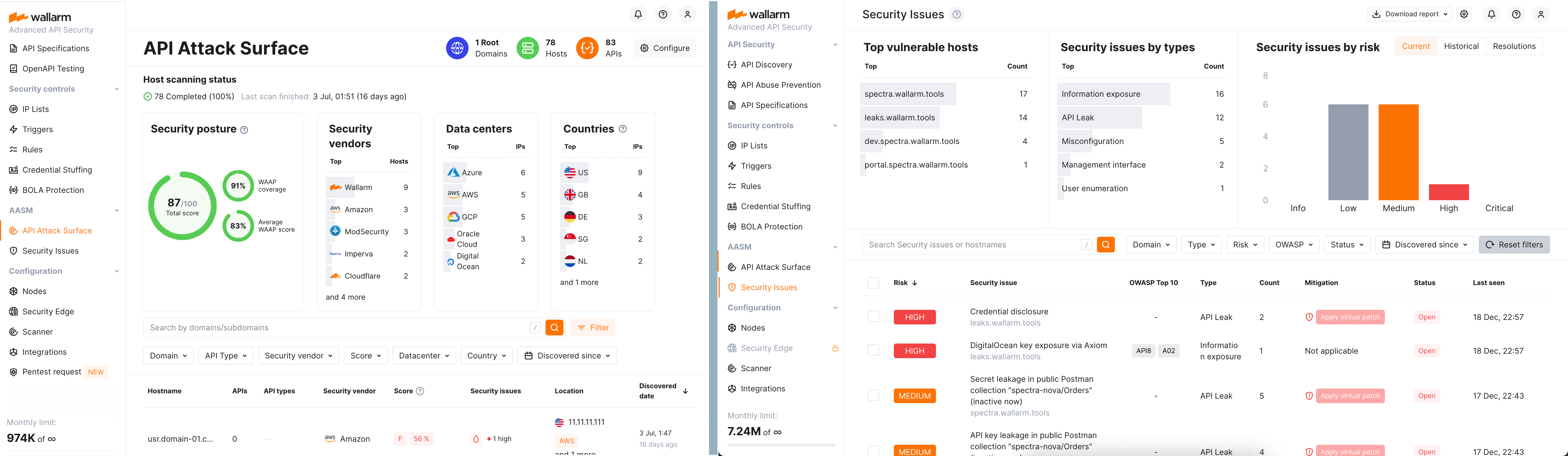 • API Attack Surface Management (AASM) Freemium — instantly discover your external hosts and APIs without any deployment. Simply provide your business email, and Wallarm will start scanning your company domain automatically.